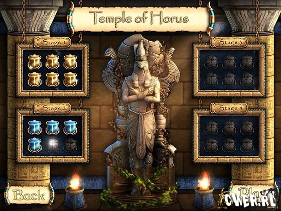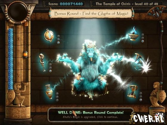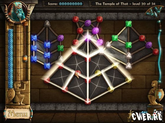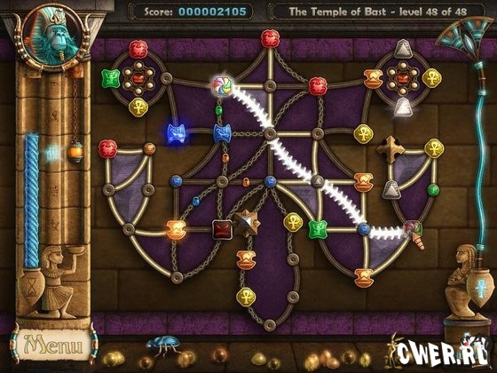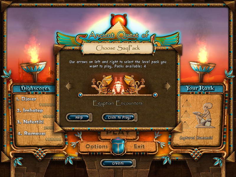 Примечание: Вы можете играть как в оригинальные уровни The Ancient Quest, так и в дополнения - Egyptian Encounters, Far Eastern Frenzy и Monkey Monarchs. Это можно сделать, нажав "Play" в главном меню и стрелками выбрав The Ancient Quest (Default) или нужное дополнение.