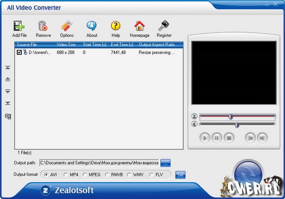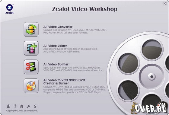 Zealot Video Workshop это конвертер видео файлов различных форматов, нарезка и соединение видео файлов, создание и запись видео CD, DVD.