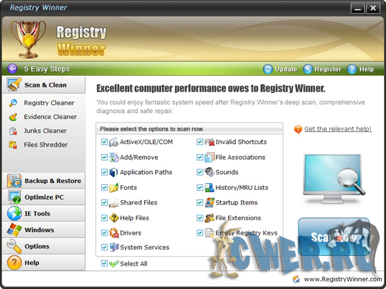 С использованием Registry Winner на регулярной основе ваша система будет поразительно стабильна. Registry Winner сканирует весь компьютер на возможные ошибки, которые ведут к проблемам в реестре. Происхождение у них может быть разное, но для программы это не имеет значения – она справиться со всем легко и быстро.