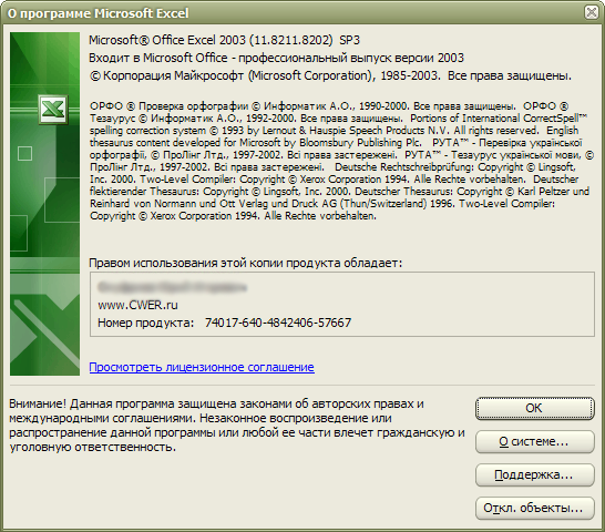 • Обновление безопасности для Excel 2003 (905756)