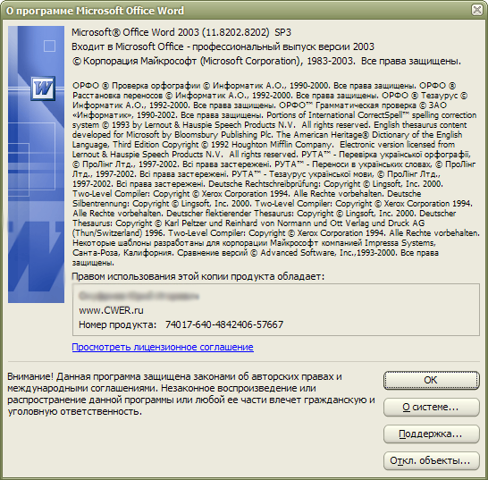 • Обновление безопасности для Word 2003 (917334)