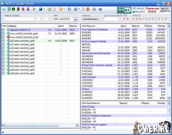 - Проверяет пароли на возможность скачивания различных версий инсталляторов NOD32 (Home, Business...).