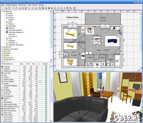 Sweet Home 3D - бесплатная программа для помощи в оформлении дизайна жилых помещений и проектирования интерьеров, не требующая специальных навыков. С ее помощью можно создать 2D план настоящего помещения или квартиры, разместить на нем окна, двери и мебель, а затем увидеть, как все это будет выглядеть в интерактивном 3D.