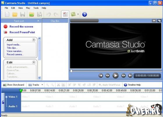 Camtasia Studio - мощная утилита для записи изображения с экрана в видеофайлы различных форматов, имеется возможность редактирования видео, есть встроенные Macromedia Flash (SWF) и видео проигрыватели. Camtasia захватывает действия и звуки в любой части Windows-систем и сохраняет в файл стандарта AVI.