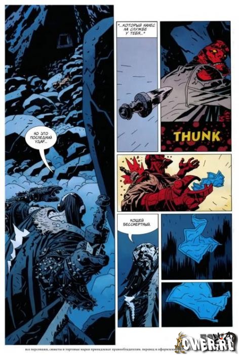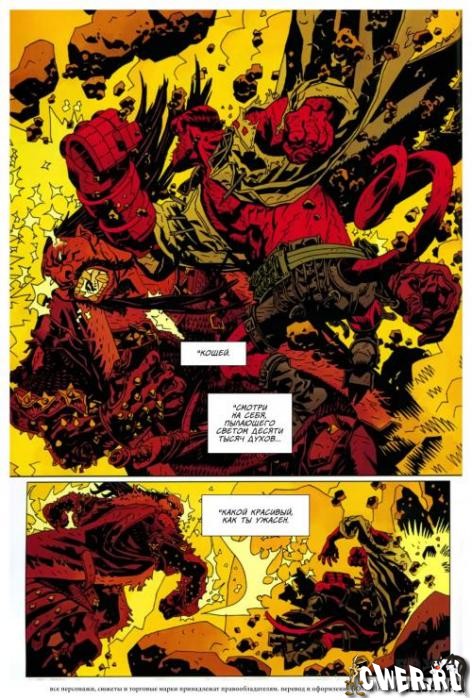 Вы можете подумать, что герой этого комикса - тупой демон, разбивающий все на своем пути, который бегает по древним замкам и крошит в труху древних скелетов. Да, это так, но это далеко не все, что ждет вас в мире Хеллбоя. Попав в мир людей, Хеллбой обрел человеческие чувства и он готов отказаться от бесконечного могущества, которым может обладать ради того, чтобы спасти своих друзей и помочь людям, которые попали в беду. Кроме того, путешествуя вместе с Хеллбоем вы узнаете много интересного о древних мифах самых разных культур - от Африканских народов до Русских сказаний! Именно так, в комиксе Hellboy: Darkness Calls Хеллбой вступает в поединок с Кощеем Бессмертным, которого на него натравила Баба Яга. На помощь Хеллбою приходит и леший и домовой и даже Василиса Прекрасная! Целых шесть выпусков о русских сказках в комиксах Майка Мигнолы, вот это действительно интересно.