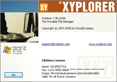 XYPlorer - продвинутый файловый менеджер, работающий под Win98/NT/ME/2000/XP/Vista, достойная замена проводнику Windows, с поддержкой вкладок. Мощный поисковый механизм, предосмотр мультимедийных файлов, графики, аудио, видео, HEX и ASCII просмотрщик файлов, работа с mp3-тегами, широкие возможности для визуализации (выделение цветом избранных папок и пр.), формирование фильтров отображения файлов, экспорт информации о файлах в CSV формат и многое другое. XYplorer не оставляет записей в реестре, поэтому возможна работа со сменных носителей, например с флеш носителях.