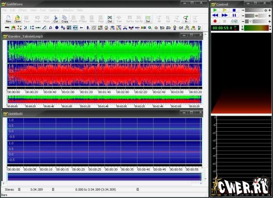 GoldWave - очень мощный звуковой редактор, предназначенный для проигрывания, редактирования, смешивания и анализа звуковых файлов. Умеет быстро работать с большими файлами. Имеет много разных эффектов. Понимает MP3, WAV, AU, IFF, VOC, SND, MAT, AIFF, raw, data, а также множество прочих форматов. Умеет конвертировать из одного формата в другой. С помощью GoldWave можно применять всевозможные эффекты (добавлять эхо, эффект "увядания" звука (Fade), редактировать эквалайзером и пр.) убирать шумы, реставрировать старые записи и т.д. GoldWave позволяет записывать звук с кассет, пластинок, радио, а также с микрофона. Инструмент CD Reader дает возможность делать точные копии треков аудиодисков.