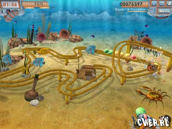 Ваша задача заключается в уничтожении разноцветных шариков в цепочке пока они не дошли до конца. Управляя подводным батискафом нужно группировать цепочки по 3 одинаковых по цвету шарика, тем самым уничтожая их.