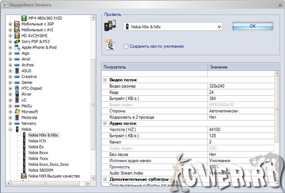 - MP4 файлы для форматов iPod/iPhone/PSP/BlackBerry