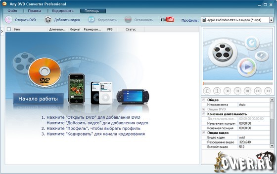 Any DVD Converter Pro – позволяет преобразовывать видео среди форматов AVI, MPEG, WMV, DivX, RM, MOV, 3GP, XviD, VOB и др. Помимо этого, программа обладает функцией риппера, которая позволяет копировать DVD-диски. Кроме того, Any DVD Converter Pro поддерживает пакетное преобразование файлов.