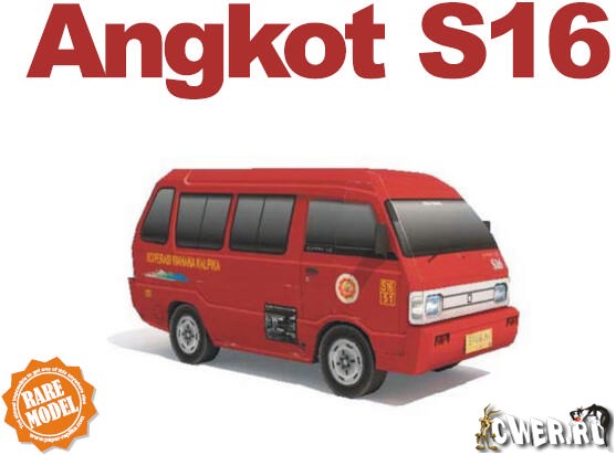 Модель маленького но симпатичного бусика Аngkot S16. Распечатываем, вырезаем, склеиваем.