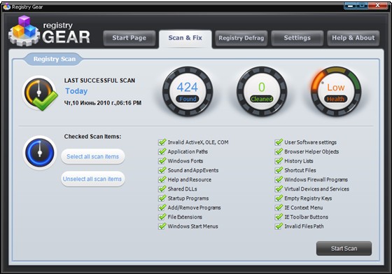 Registry Gear – это следующее поколение программ очищения реестра Windows и оптимизации системы. Используя современную систему сканирования, данная программа предоставит вам полную диагностику реестра Windows, удалит недействительные записи в реестре, ссылки и связи, определит и полностью восстановит ошибки в реестре и другие конфликты. Registry Gear может ускорять и оптимизировать реестр Windows для повышения производительности этой операционной системы, ускорять работу вашего компьютера для быстрой навигации и эффективной работы.
