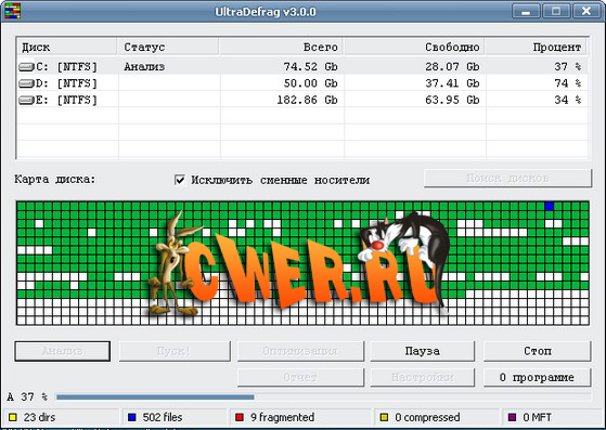 Puran Defrag - это высокоскоростной дефрагментатор, обладающий необычайно простым и удобным интерфейсом, а также некоторыми необычными функциями. Необычность включает в себя не только непривычно удобный интерфейс, но и сама технология дефрагментации, которая заключается, как в полной дефрагментации дисков, или отдельных ее файлов из простого контекстного меню, так и размещение часто употребляемых файлов в область более быстрого доступа, что как и понятно, существенно увеличивает производительность. Даже если для полной дефрагментации файла не хватает места, программа использует все имеющиеся ресурсы и дефрагментирует файл, насколько это возможно. Данный дефрагментатор идеально подойдет для тех пользователей, кому некогда, а обслуживать систему все равно надо. Имеет очень простой интерфейс, который не вызовет каких-либо проблем при использовании данной программы.