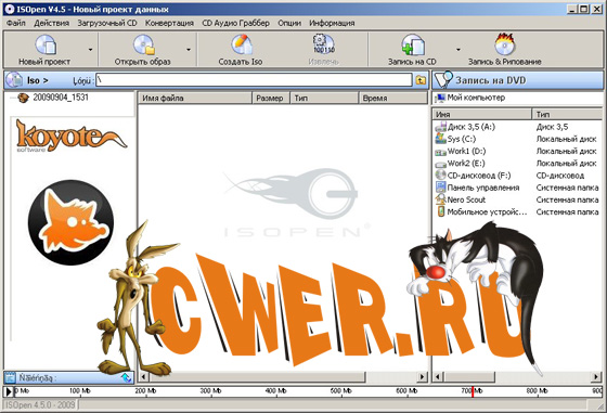ISOpen — мощное средство для создания и прожига образов дисков. Программа не только создает ISO-образы, но и редактирует их: удаляет или добавляет файлы, сжимает, меняет метки, добавляет загрузочные области. Есть поддержка создания и редакторования загрузочных образов. Приятный и понятный интерфейс, русский язык, хорошие возможности — все это делает программу привлекательной и незаменимой.