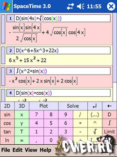 SpaceTime - графический калькулятор, способный отображать графики 2D, 3D, 4D функций, а также обладающий практически всеми возможностями TI-83 калькулятора.