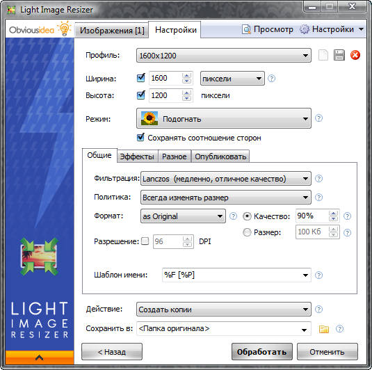 Light Image Resizer ранее известный как VSO Image Resizer - программа для изменения размеров цифровых картинок и изображений в различных графических форматах (на данный момент поддерживается работа с файлами JPEG, GIF, BMP, TIFF, CR2, NEF и т.д.). Также в утилите имеются возможности для компрессии файлов, конвертирования из одного формата в другой, экспорта, наложения и управления картинками. Light Image Resizer интегрируется в оболочку Windows, может работать в пакетном режиме, обладает расширенными опциями настройки для продвинутых пользователей.
