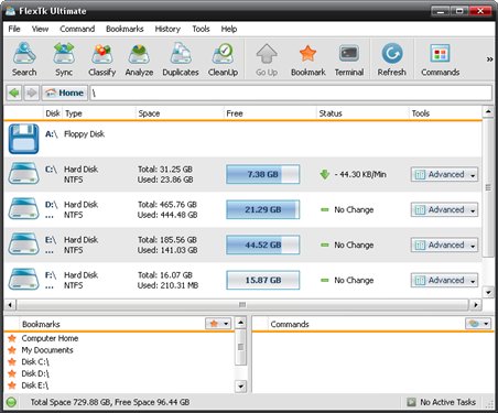 FlexTk - это объединенный в одной оболочке набор инструментов для управления файлами. Программа позволяет классифицировать и сортировать файлы по категориям, копировать и перемещать файлы по точкам и закладкам, анализировать загрузку площади диска, идентифицировать "горячие точки" устройств хранения информации, осуществлять поиск и удаление дубликатов файлов, генерацию сигнатур для файлов и проверку целостности файлов и папок, освобождать дисковое пространство и многое другое.